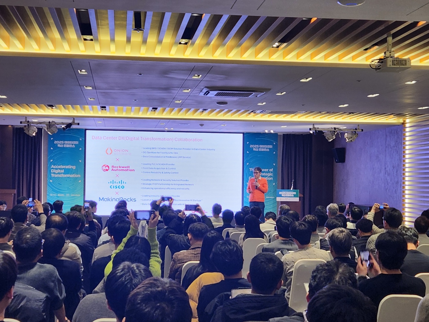 어니언소프트웨어가 주관하고 로크웰 오토메이션, 시스코, 마키나락스가 함께한 이번 컨퍼런스는 한국데이터센터에너지효율협회(KDCEA)의 후원으로 진행되었는데요. 업계 리더들과 전문가들이 한자리에 모여 데이터센터의 현재와 미래를 깊이 있게 논의한 뜻깊은 자리였습니다.