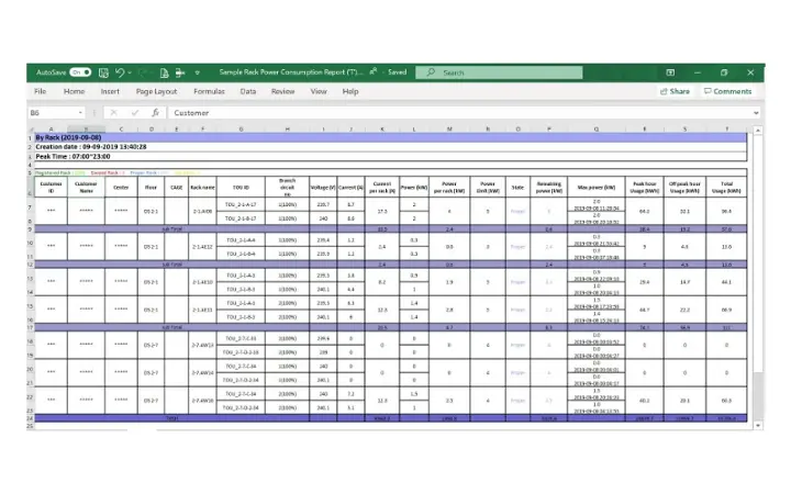 You can run a search by customer, rack or power source, etc, and export the your search results to excel instantly.